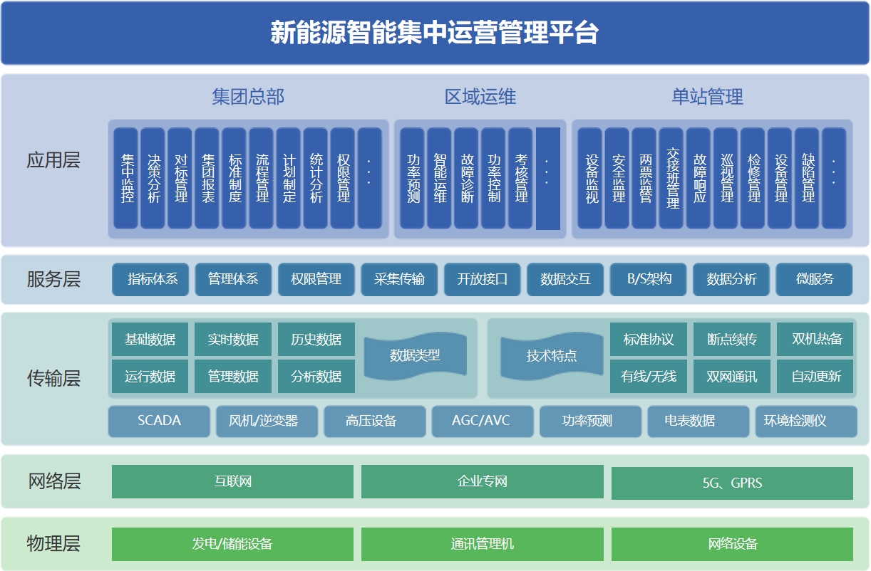 新能源场站集中运营管理平台是综合性管理系统,旨在实现对新能源场站的集中监控、智能运维、高效调度和优化管理。平台将分散的新能源场站设备、数据和业务流程进行集中管理,覆盖了新能源发电项目的全生命周期,为新能源场站的高效运营提供全方位支持。随着新能源发电规模的不断扩大,新能源场站数量众多且分布广泛,传统的分散管理模式已难以满足高效运营的需求。平台能够打破信息孤岛,实现设备之间的互联互通和数据共享,提高管理效率,降低运营成本,提升新能源场站的整体性能和经济效益。