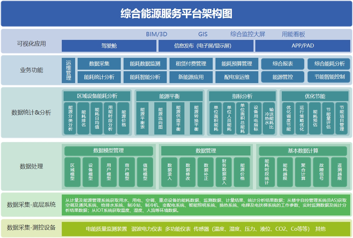 数据可视化可为能源运行的智慧运维提供决策支持,实现能耗数据的在线监测,对采集到的能耗数据进行统计与分析。